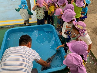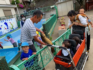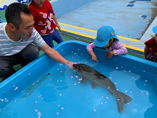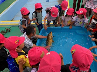 どのクラスも「鯉のぼり」を制作していますが、本物の「鯉」に触れ合う!?機会はなかなかないのでは…?
